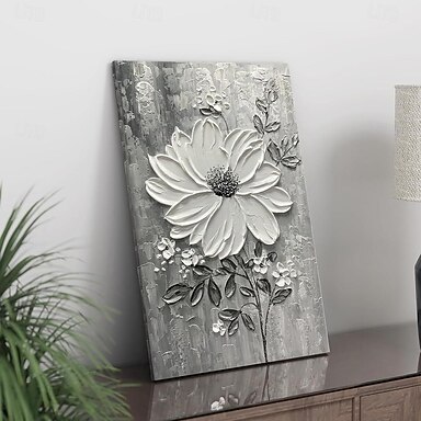 dipinto a olio fatto a mano su tela decorazione artistica da parete trama astratta fiori bianchi e neri per la decorazione domestica pittura senza cornice arrotolata non stirata