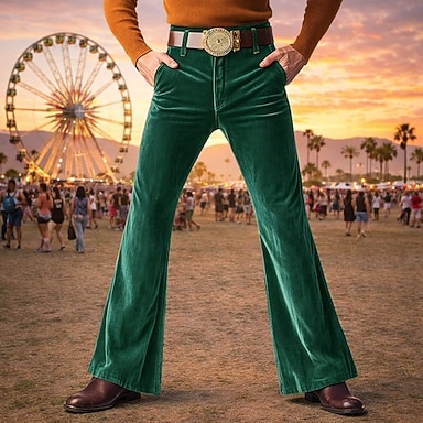 Retrò Vintage Anni '70 Pantaloni Pantaloni a zampa d'elefante Pantaloni a zampa Hippie Disco Costume Per uomo Halloween Carnevale Feste Performance Abbigliamento Quotidiano Adulti Pantaloni