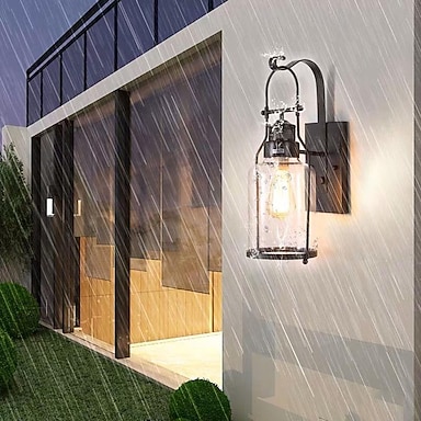 Lampada da parete per esterni Kit in metallo da 44 cm con paralume in vetro Lampada da parete industriale per applique decorazione per interni