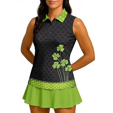 San Patrizio Per donna Trifoglio Maglietta sportiva Polo da golf Canotta Maglia da tennis Senza Maniche Floreale Bottoni UPF50+ Resistente ai Raggi UV Alta elasticità Traspirante Pallavolo Tennis Golf