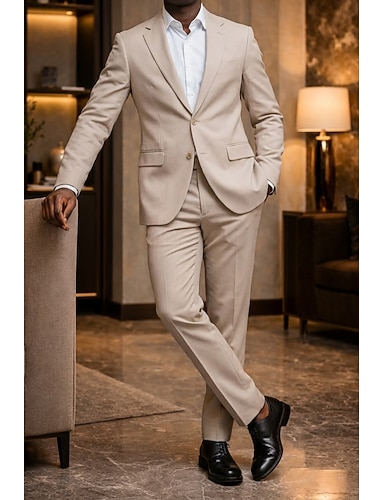 Uomo Completi Matrimonio in Spiaggia Affari Beige Primavera, Autunno, Inverno, Estate Tuta Bavero a lancia Moda Formale Tinta unita Vestibilità standard 2 pezzi Doppiopetto a sei bottoni