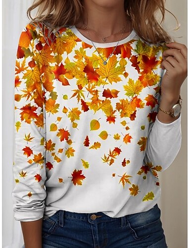 T-Shirt da Donna Grafica Floreale Piante Vintage Moda Elegante Manica Lunga Girocollo Collo Rotondo Top Regolari Quotidiano Weekend Stampa Arancione Khaki Primavera Autunno Inverno