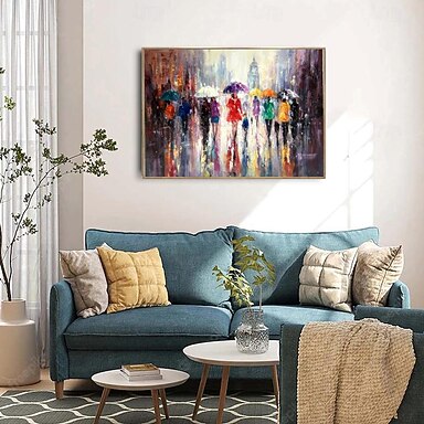 dipinto a olio fatto a mano su tela decorazione della parete arte pioggia scena di strada per la decorazione domestica arrotolata senza cornice pittura non stirata