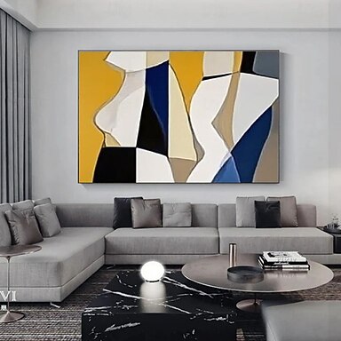 dipinto astratto giallo blu fatto a mano arte murale astratta arte murale moderna minimalista arredamento contemporaneo blu giallo