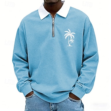 Per uomo Magliette Polo a Nido d'Ape Polo Vacanza Streetwear Zip a un quarto Manica Lunga Moda Essenziale Blocco di colori Albero di Cocco Patchwork Primavera Autunno Vestibilità regolare Nero Verde