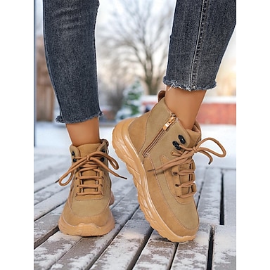 scarponi da trekking da donna color marrone chiaro – stivaletti con cerniera laterale, suola antiscivolo per uso outdoor e casual