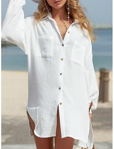 Per donna Mini Abito Finto cotone e lino Abito a Tubino Casual Quotidiano Vestibilità comoda Semplice Manica Lunga Bavero Bianco Estate Primavera Autunno