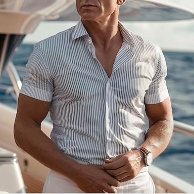Per uomo Camicia da Spiaggia Grigio chiaro Manica Corta A righe Bavero Vacanza Abbigliamento Moda Casual Confortevole