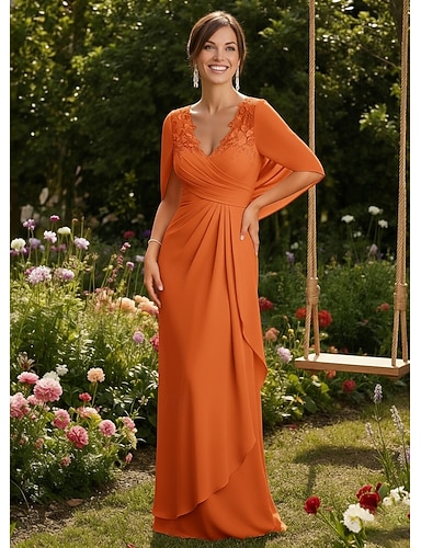 Tubino Colonna Lunghezza al pavimento Abito da invitata a nozze Abito Formale Abito da sera Abito da cerimonia per signora Senza Maniche Scollo a V Elegante Formale Chiffon con Pizzo Pieghe