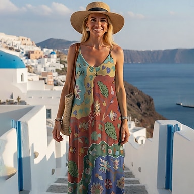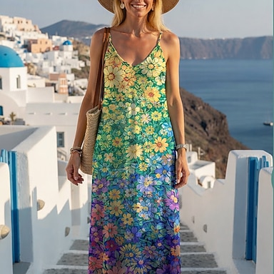 Per donna Abito maxi Abito Boho Vestito Casual Abito Sottoveste Vintage Quotidiano All'aperto Vacanza Vestibilità regolare Floreale Senza Maniche Spalline sottili Verde Estate Primavera