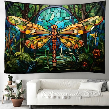 Arazzo da parete con libellula in vetro colorato, grande arazzo da parete, sfondo fotografico, coperta, tenda, camera da letto, soggiorno, decorazione
