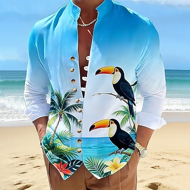 Per uomo Stampa Floreale Fiori Camicia Camicia con colletto alla coreana Manica Lunga Casual Vacanza Abbigliamento quotidiano Uscire Primavera Autunno Collo alla coreana Colletto alla coreana