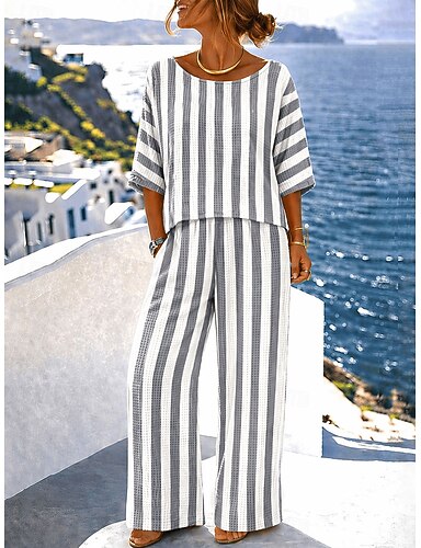 Set di Pantaloni Waffle da Donna Maniche Corte Collo Tondo Stampa Grafica Strisce Moda Streetwear Casual Quotidiana Outdoor Blu Grigio Primavera e Estate Comodo