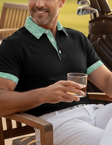 Per uomo Testurizzato Maglia da golf Casuale Affari Classico Manica Corta Moda Moderno Tinta unica Hawaii Bottoni Estate Primavera Primavera & Estate Vestibilità regolare Nero Bianco Verde Cachi