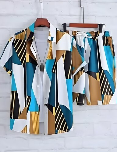 Per uomo Geometrico 2 pezzi Set di camicie Top estivi Manica Corta Pantaloni corti Collo ripiegato Casual Resort All'aperto Casuale Quotidiano Stampa 3D Estate Rosso rubino