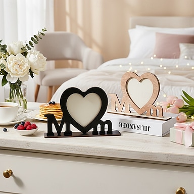 Corona decorativa a forma di cuore in legno per la festa della mamma, design semplice e moderno per le celebrazioni dei festival, perfetta come regalo e come decorazione da tavolo per le feste.