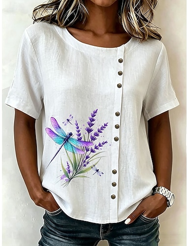 Per donna Maglietta Stampato Bottoni sul petto Floreale Grafico Elegante Moderno Casual Manica Corta Henley Top Regolari Quotidiano Blu Giallo Rosa Viola Verde Estate Primavera