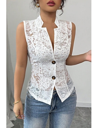 Per donna Blusa Top in pizzo Pizzo Semplice Elegante Moderno Senza Maniche Scollo a V Top Regolari Quotidiano Ferie Uscire Bianco Estate