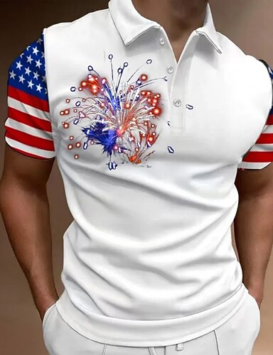 4 luglio 2026 250° Per uomo Bandiera Americana Polo Manica Corta Magliette polo Camicie con Colletto Casual All'aperto Athleisure Abbigliamento quotidiano Stampa 3D Bottoni Estate Blu