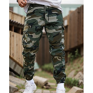 Per uomo Pantaloni Cargo Pantaloni Pantaloni mimetici Coulisse Elastico in vita Multi-tasche Mimetico Indossabile All'aperto Quotidiano Campeggio & Escursionismo Moda Classico Nero Verde militare