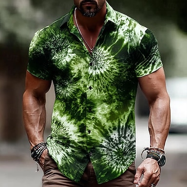 Per uomo Hippie Stampa tie dye Camicia Camicia con Bottoni Manica Corta Moda Casual Abbigliamento casual alla moda Vacanza Estate Primavera Collo ripiegato Stampa 3D camicie con colletto Viola Verde