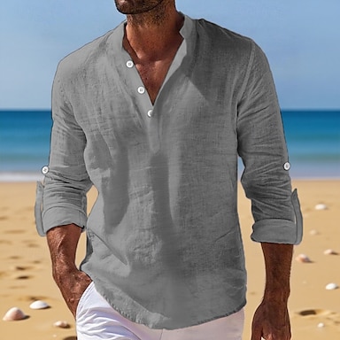 Per uomo Camicia Camicia di lino Camicia in cotone e lino Camicia bianca di cotone Camicia con colletto cinese Camicia con colletto alla coreana Semplice Vacanza Streetwear Bianco Blu reale Grigio