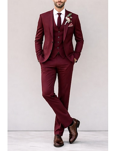 Uomo Smoking Completi Matrimonio in Spiaggia Matrimonio primaverile Nero Borgogna Primavera & Estate Tuta Bavero classico Tinta unita Vestibilità standard 3 pezzi Monopetto Due Bottoni