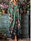 Per donna Abito Midi Abito a trapezio Vacanza Casual Quotidiano Vestibilità comoda Floreale Grafico Manica Lunga Scollo a V Blu Rosso Verde Primavera Autunno
