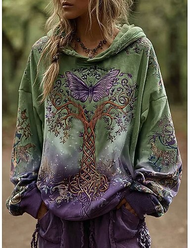 Felpa con cappuccio vintage boho stampata in 3D da donna felpa a patchwork floreale pullover felpa farfalla casual maniche lunghe con cappuccio abbigliamento da festa serale abbigliamento quotidiano