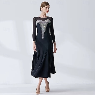 Per donna Da donna Abito da smoking Linea ad A Formale Raso Strass Elegante Vintage Manica 3/4 plissettata Lunghezza Tè Risvolto a punta Doppiopetto