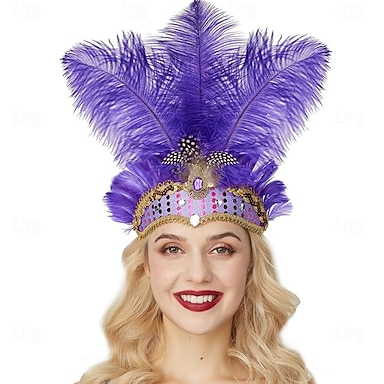 Carnival 2026 Rio Carnival Samba Accessories Copricapo con Piume di Struzzo Viola per Donne - Copricapo con Paillettes e Strass - Costume da Showgirl per Carnevale Mardi Gras Costume per Performance