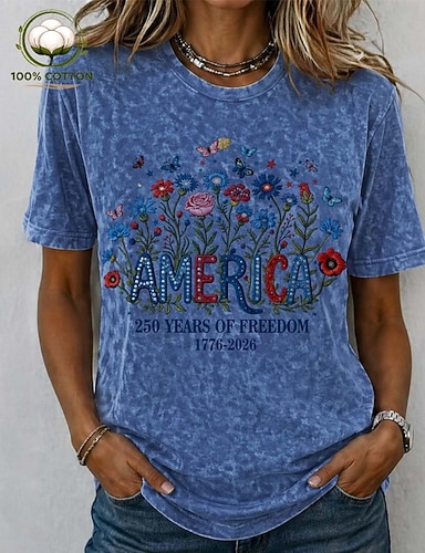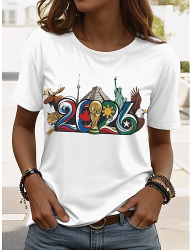 Maglietta da Donna World Soccer Match 2026 Stampa Grafica Lettera Elegante Classica Casual Maniche Corte Collo Tondo Regular Top Giornalieri Blu Nero Bianco Rosso Verde Estate Primavera