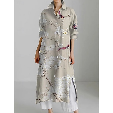Per donna Abito Lungo Maxi Abito Abito Camicia Vestito Casual Moda Moderno Quotidiano Ferie Weekend Vestibilità regolare Grafico Animale Manica 3/4 Colletto a Camicia Bianco Giallo Verde Cachi Estate