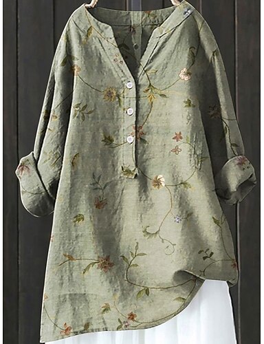 Per donna Camicia Abbottonare Blusa Finto cotone e lino Bottoni Stampato Floreale Geometrico Essenziale Casual Manica Lunga Colletto a Camicia Top Regolari Quotidiano Verde militare Rosso Cachi Grigio