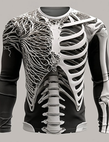 Per uomo 3D Scheletro Maglietta Manica Lunga maglietta Stampa 3D Girocollo Camicia Moda Esagerato Streetwear Casuale Quotidiano Blu Arancione Verde Estate Primavera Autunno Abbigliamento S M L XL XXL