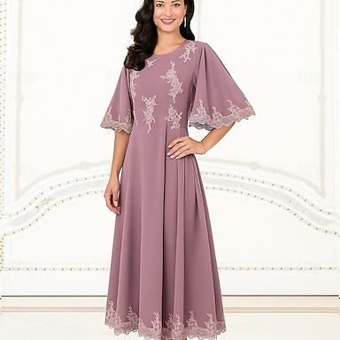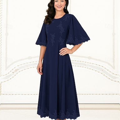 Abito da Festa A-Line di Lunghezza alla Caviglia Abito da Cocktail Abito per Ospiti di Nozze Abito per Madre della Sposa Manica 3/4 Collo Rotondo Elegante Formale in Pizzo con Pizzo