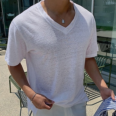 Per uomo Maglietta Camicia a Maniche Corte Manica Corta Scollo a V Estate Primavera Semplice Moda Designer Essenziale Classico Vacanza Streetwear Uscire Bianco Maglietta Top per Uomo