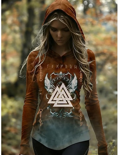 Per donna Felpa con cappuccio Stampato Grafico Geometrico Tribale Casual Manica Lunga Con Cappuccio Top Regolari Casuale Abbigliamento da sera Streetwear Blu Rosso violaceo Viola Verde Primavera