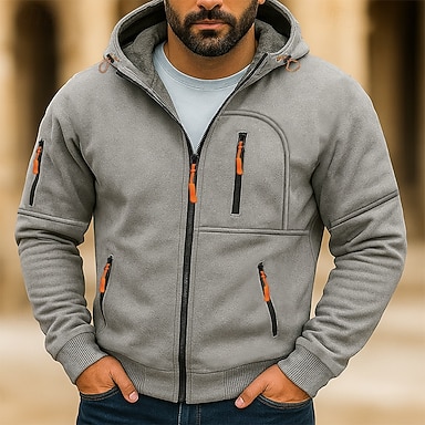Per uomo Felpa con cappuccio Felpa con cappuccio a zip intera Felpa con cappuccio in pile Tattico Nero Bianco Vino Blu marino Blu Reale Con Cappuccio Semplice Cerniera Tasca Sport & Outdoor