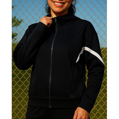 Per donna Blocco di colori Giubbotto bomber Giacca in pile con cerniera Autunno Manica Lunga Athleisure Antivento Caldo Spesso Corsa All'aperto Viaggio Vacanze Nero Bianco Beige abbigliamento sportivo