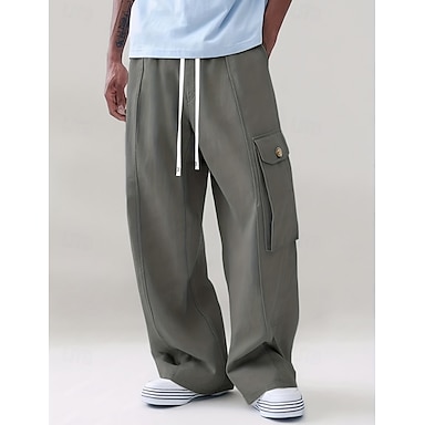 Per uomo Pantaloni Cargo Pantaloni Pantaloni Larghi Multi-tasche Tasca con Patta Tinta unica Antivento Indossabile Casuale Quotidiano All'aperto Streetwear Elegante Nero Verde militare