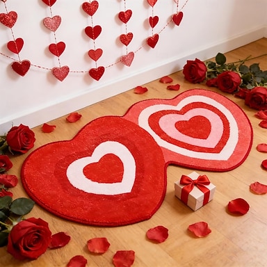 zerbino per San Valentino a forma di cuore, tappetino da doccia rosso, rosa e bianco con scritta "Love", tappeti antiscivolo per camera da letto, decorazioni per la cucina