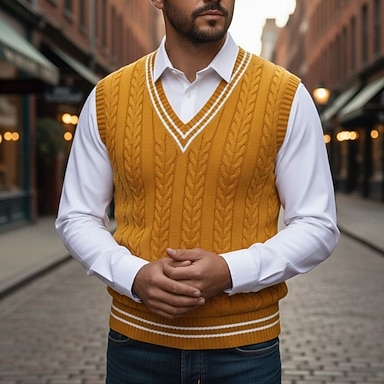 Per uomo Gilet Maglione elegante Maglione Maglione a maglia A Coste Treccia Maglia Top Regolari Lavorato a maglia Blocco di colori Scollo a V Moda Casual Vacanza Abbigliamento quotidiano Abbigliamento