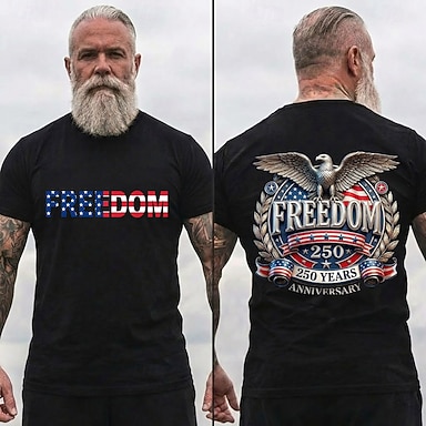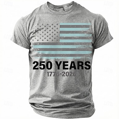4 luglio 2026 250° Giorno della Memoria Maglietta a Maniche Corte con Stampa 3D Bandiera Statunitense Collo Giro Uomo Stile Quotidiano
