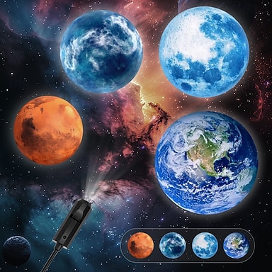 Lampada da astronauta con proiettore lunare e terrestre, luce notturna a 360°, luce di proiezione lunare USB, luce notturna a forma di stella, illuminazione di ricarica con 3 modalità, lampada