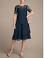 Linea ad A Asimmetrico Lunghezza alla caviglia Vestito da Festa Abito da Cocktail Abito da invitata a nozze Abito da cerimonia per signora Manica Corta Scollo a V Elegante Casual Alto Basso Formale