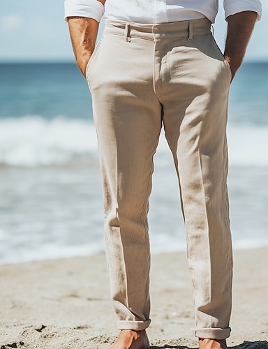 Uomo Cotone Lino Pantaloni Eleganti Pantaloni casual Affari Formale Moda Quotidiano Casual Bianco Blu marino scuro Azzurro cielo Tinta unica Vestibilità regolare Lungo Inelastico