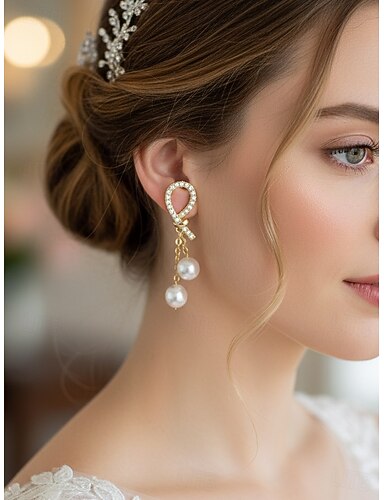 I monili nuziali 1 set Perle finte Strass 1 collana Orecchini Per donna Elegante Di tendenza Coreano Parure di gioielli Per Feste Matrimonio Regalo / Fidanzamento