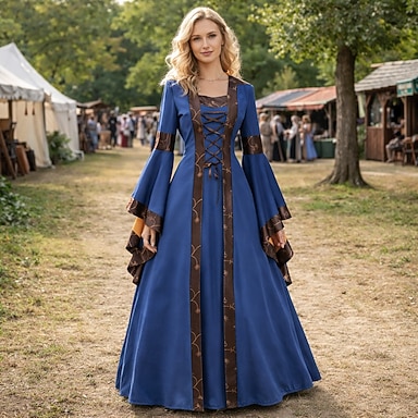 Linea ad A Lunghezza al pavimento Abito da invitata a nozze Abito Formale Abito da sera Abito da cerimonia per signora Manica Lunga Collo quadrato Elegante Vintage Festa Ferie Cocktail party Serata