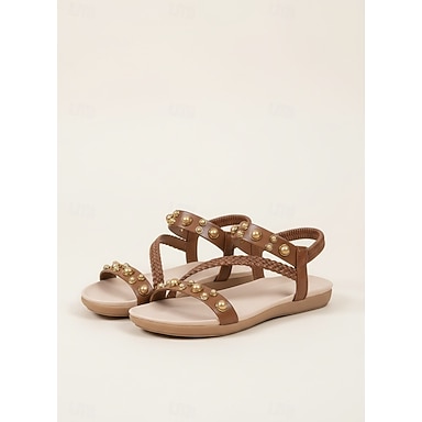 sandali piatti con cinturino a T e perline marroni da donna – scarpe estive in stile etnico boho per uscite casual, viaggi e vacanze al mare